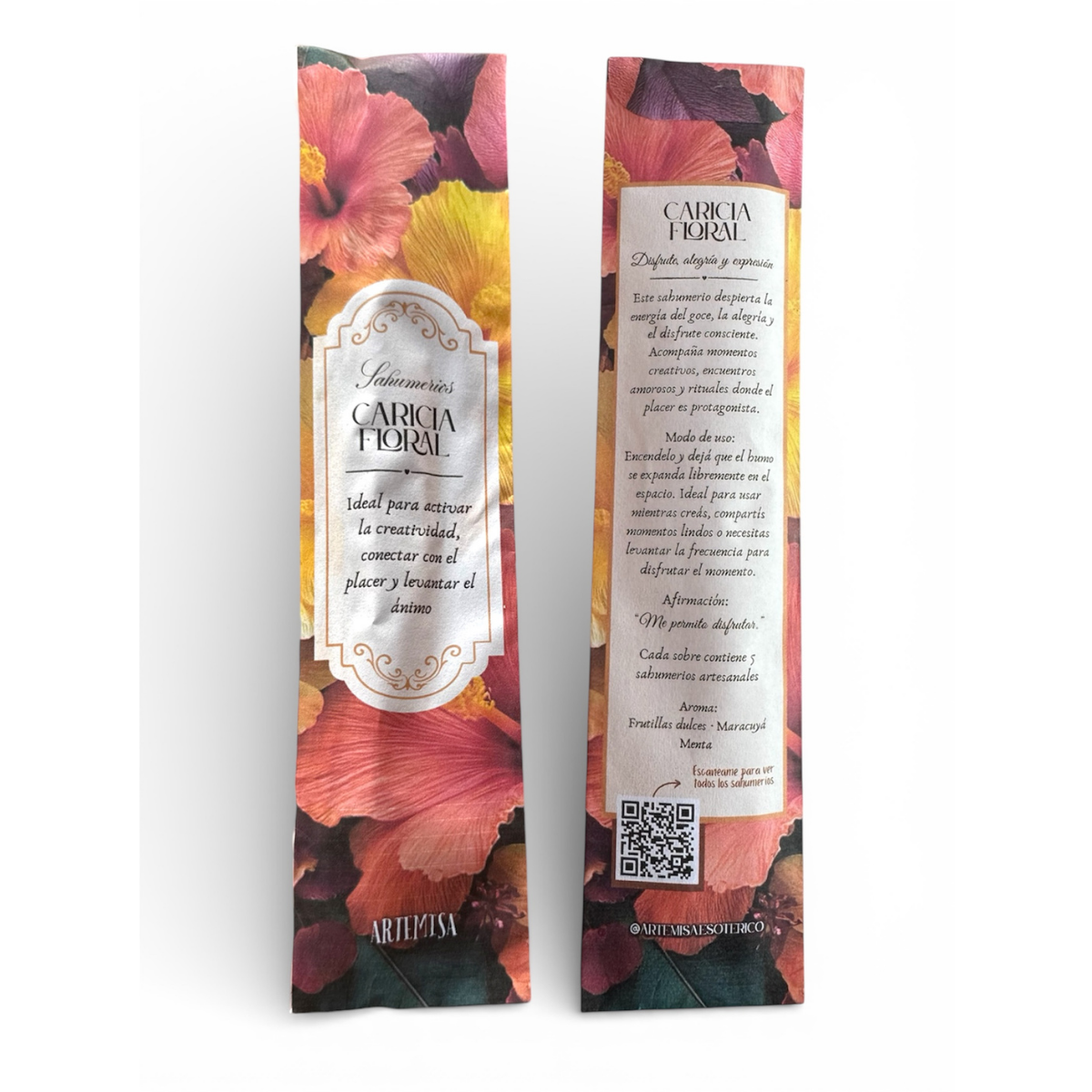 Caricia Floral es un sahumerio artesanal creado para despertar la alegría, el disfrute y la creatividad amorosa. Ideal para levantar el ánimo y habilitar el placer cotidiano.