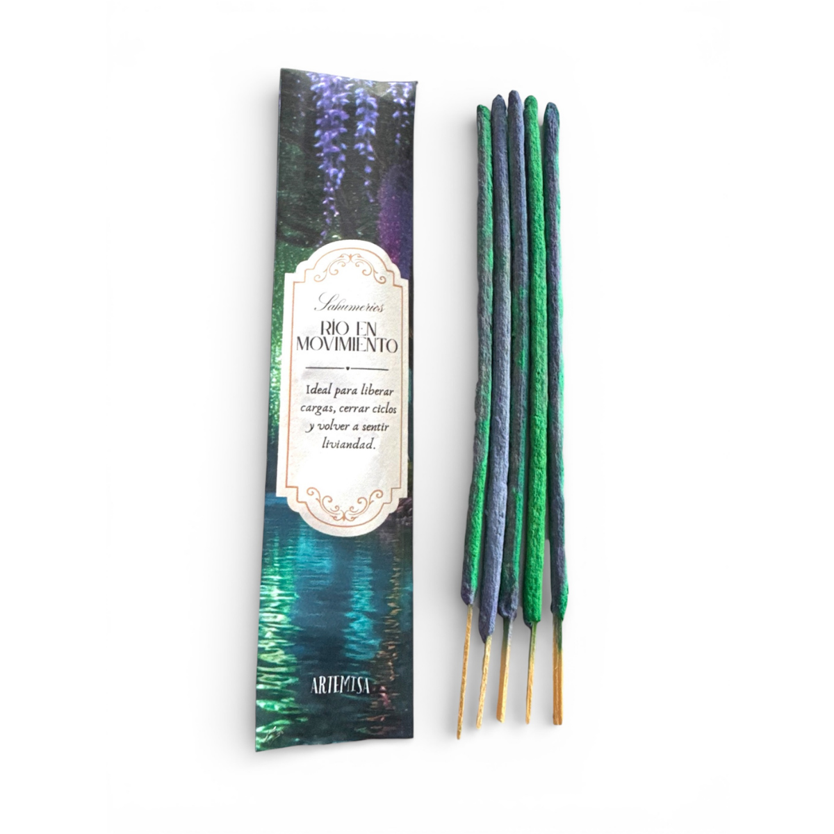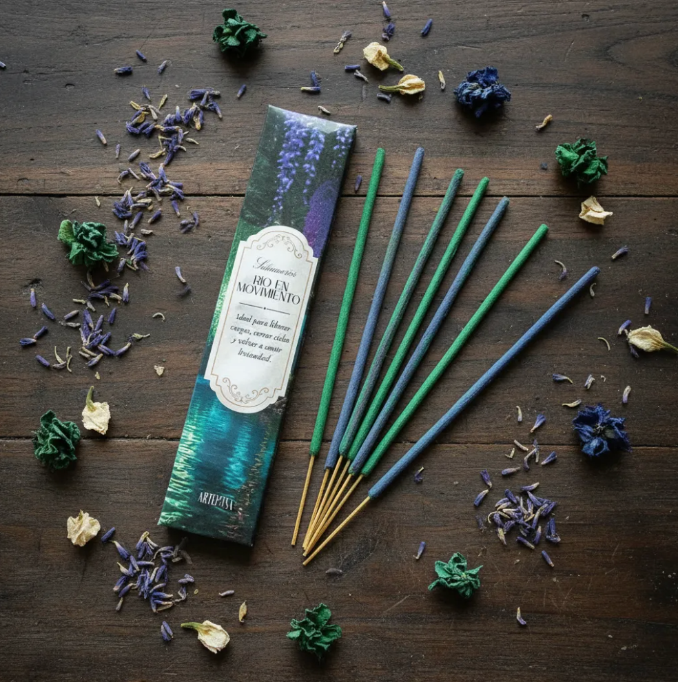 Río en Movimiento es un sahumerio artesanal creado para ayudar a soltar cargas y activar la sensación de movimiento energético. Ideal cuando sentís estancamiento o peso emocional.