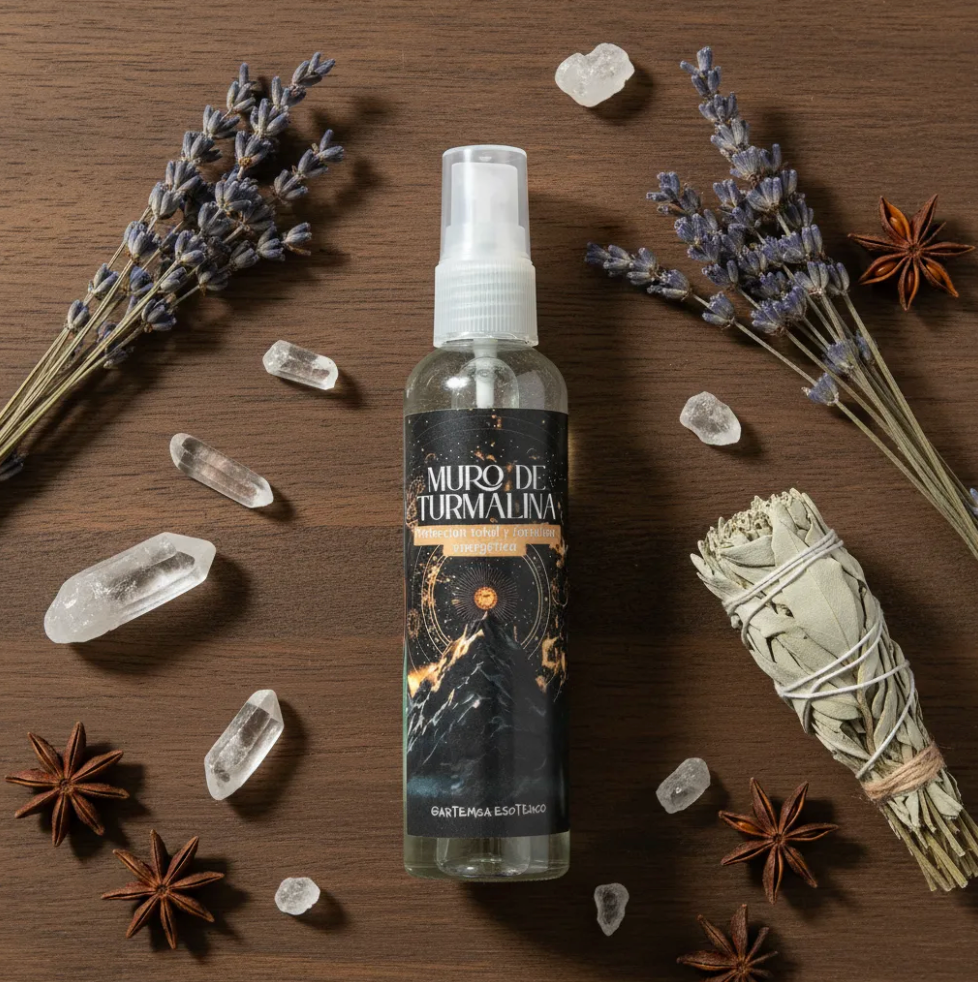 Muralla de Turmalina es un spray áurico de protección extrema. Funciona como una armadura invisible que refuerza tu campo energético y evita drenajes, ataques o interferencias externas.